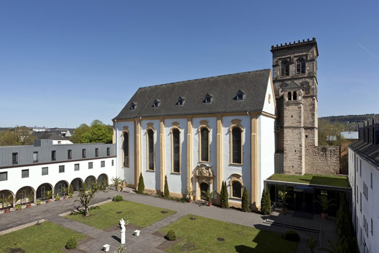 But the word ‘Oeren’ itself is evidence that the convent wasn’t just built on green grass in the 7th century. Serving as the foundations of the complex were the Roman ‘horrea’, the ancient granaries, which have still been partly preserved in the complex’s western wing. But later generations naturally also left their architectural mark, and visitors today will particularly notice the abbey’s Romanesque belltower and the impressive western wing on the shores of the Moselle, which was renovated around 1740. Like so many other churches and monasteries, however, St Irmina’s was also dissolved under Napoleon, and ultimately converted into a civil hospital, which unfortunately did not survive World War II. Since 1960, the complex has been an aged-care and nursing home, providing capacity for up to 168 people. As such, there is only very limited accessibility for the general public.